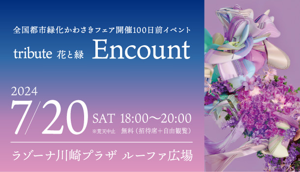 主催者:川崎市市制100周年記念事業・全国都市緑化かわさきフェア実行委員会 開催日: 2024年07月20日 時 間:18:00-20:00 場 所:ラゾーナ川崎プラザ ルーファ広場
