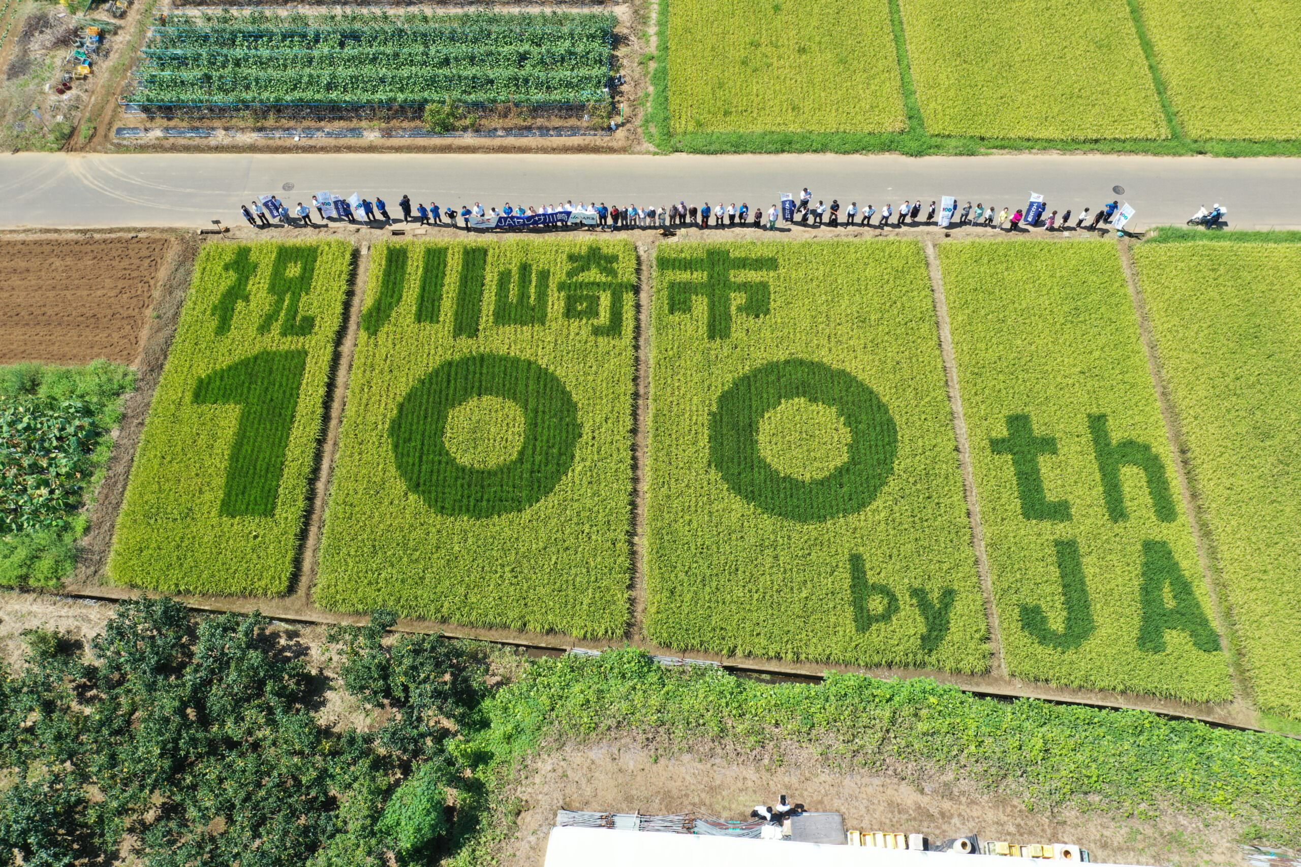 岡上の田んぼで市制100周年を大文字で表します︕田んぼアート挑戦中、その現地鑑賞会を実施します。