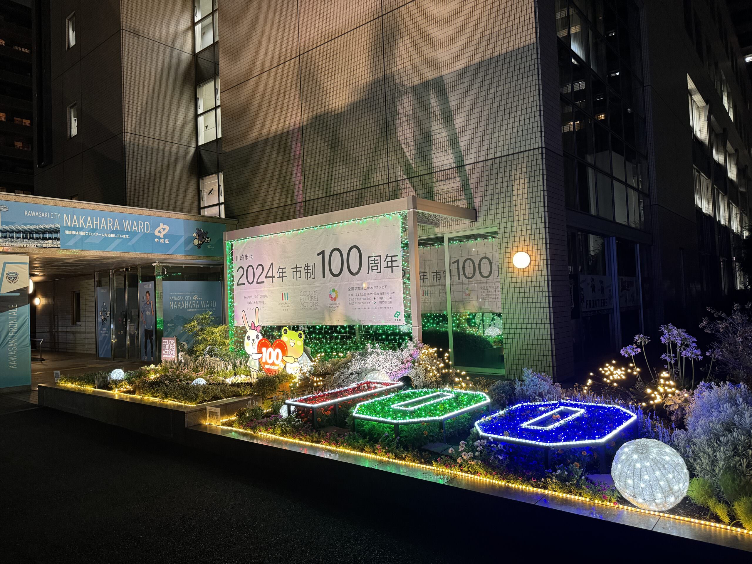 市制100周年記念花壇(中原区役所)のライトアップ 第2弾を実施!