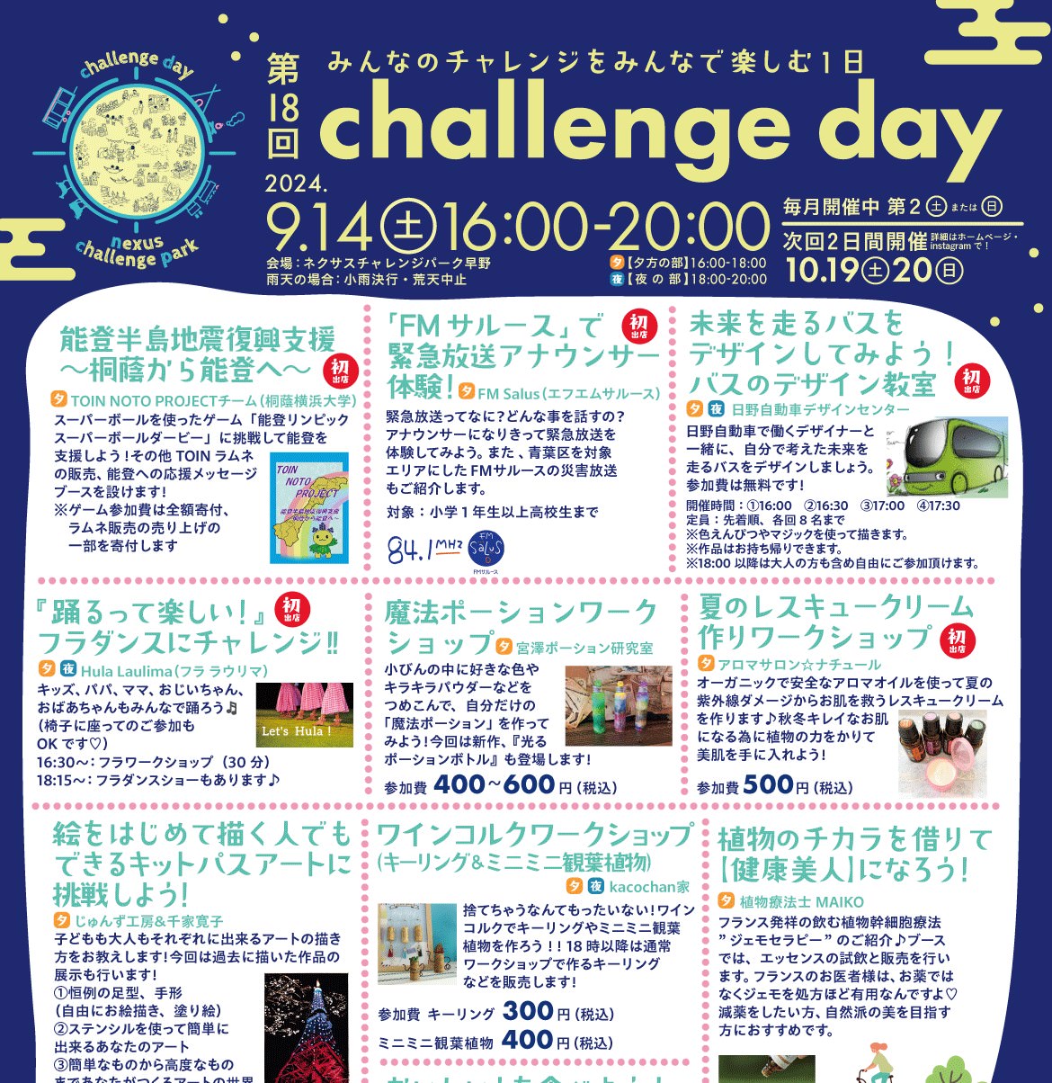 主催者:東急株式会社 ネクサスチャレンジパーク早野 開催日: 2024年09月14日 時 間:16:00-20:00 場 所:ネクサスチャレンジパーク早野(あざみ野駅・新百合ヶ丘駅からバス「虹が丘小学校」停留所 目の前)