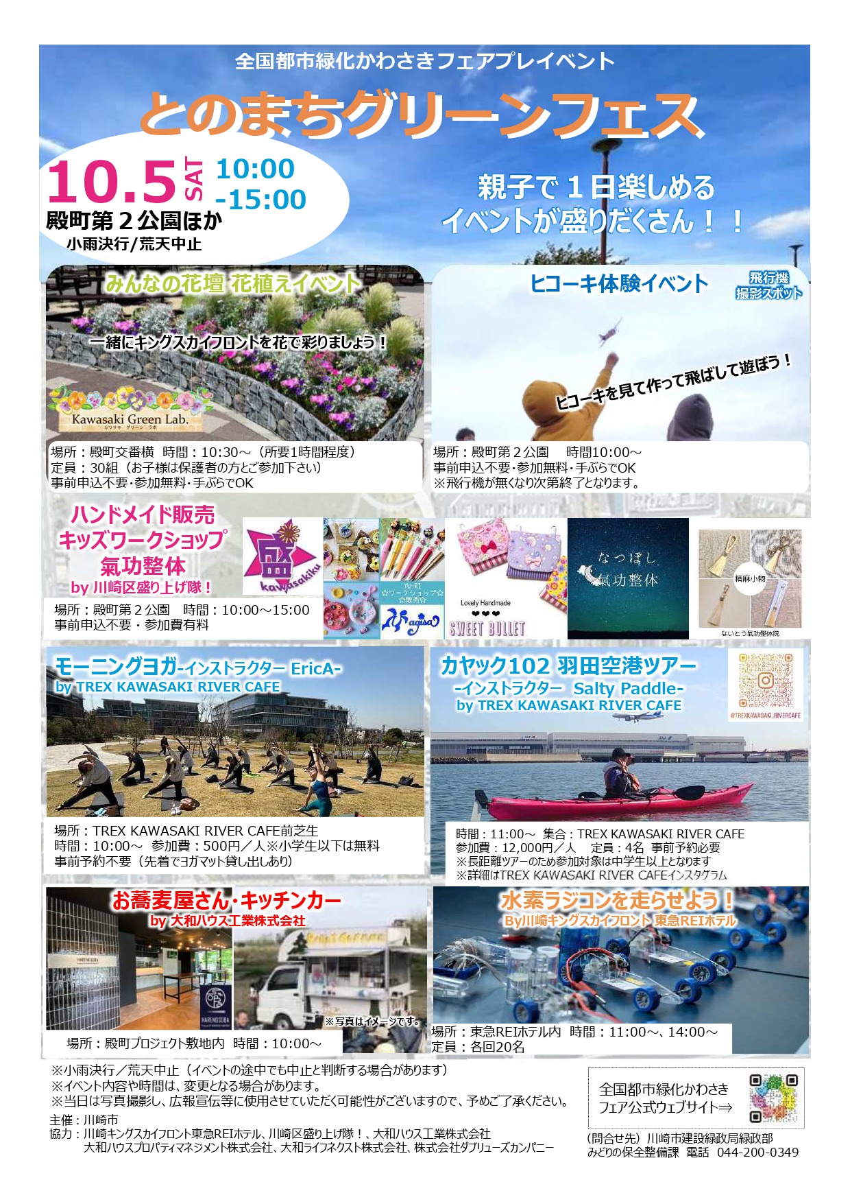 主催者:川崎市建設緑政局緑政部みどりの保全整備課 開催日: 2024年10月05日 時 間:10:00~15:00 場 所:殿町第2公園(川崎区殿町3丁目14-1) 及び周辺施設