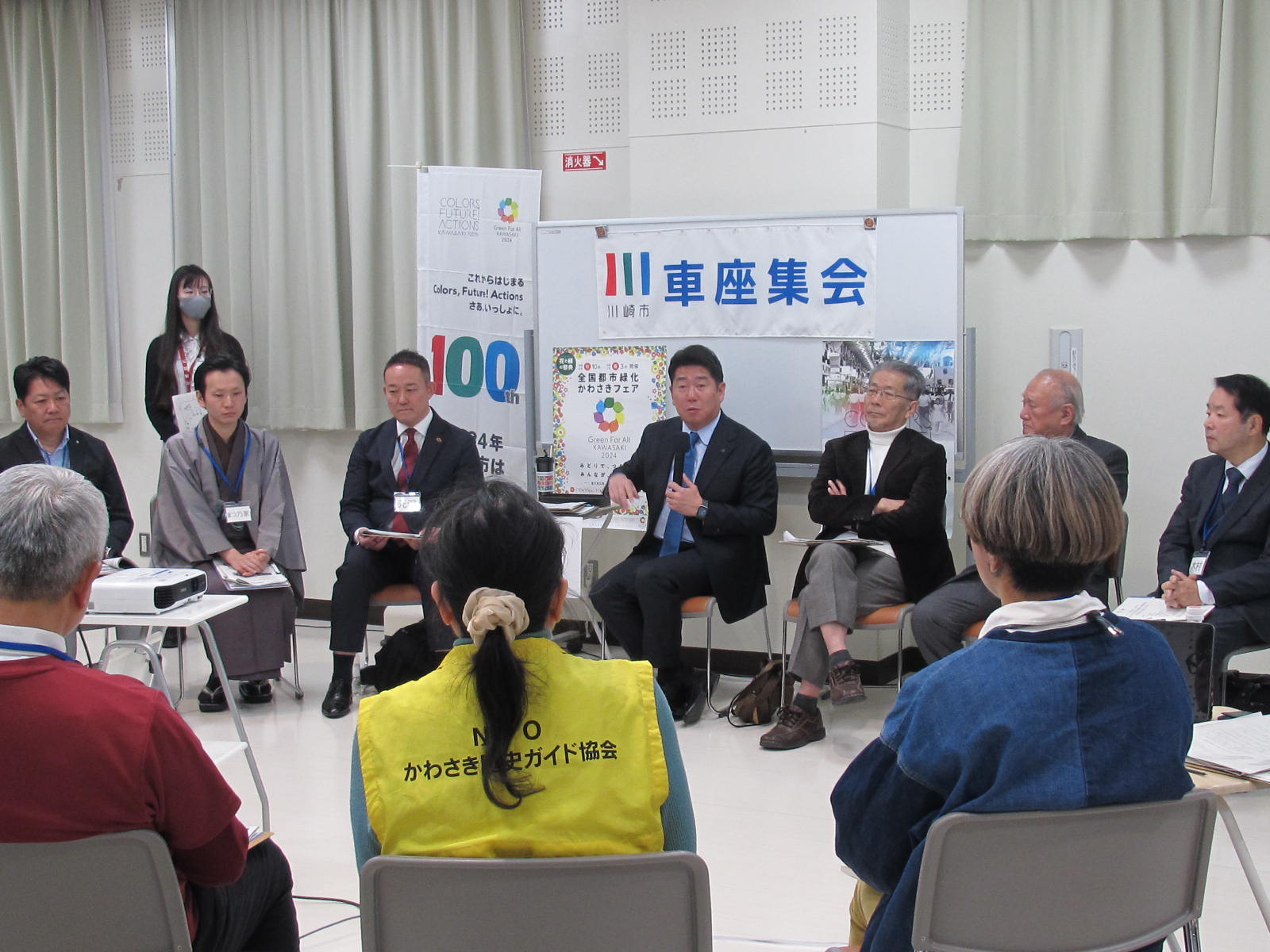 市長は、「昨年は川崎宿起立400年ということで、これまでさまざまな取組をしていただきましたが、これからも取組は続けていき、更にレベルアップして若い人たちや新たな人たちにも加わっていただくこと、また、情報を共有できる場をつくっていくことが大切だと思っています。行政がやるべきこともありますが、今回の車座集会がきっかけとなり、民間主体、地域主体で次々と取組が生まれるようなプラットフォームの設立につなげられたら嬉しいです。ぜひ、御協力ください。」と述べました。