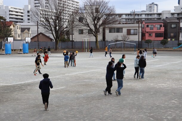 子どもたちが中心となって放課後の校庭開放のルールづくりを行い、令和5年5月末から開放を実施している川崎市立御幸小学校を訪問しました。校長から子どもたちのルールづくりの状況や普段の様子について話を聞きながら、たくさんの子どもたちがドッジボールやバスケットボールを楽しむ姿を視察しました。