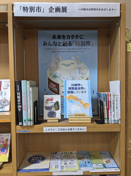 特別市のことを知っていただくため、市内すべての市立図書館と分館で企画展を開催します。