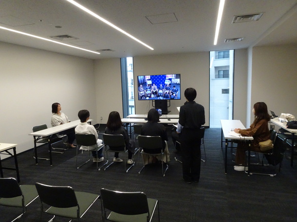 交流会ではジュニア文化賞受賞者からの自己紹介と受賞作品の紹介、イラワラ・グラマースクール生徒からの日本語での挨拶と、自ら考案したサステイナブルなグッズについての紹介があり、その後、好きな動物やスポーツの話、好きなキャラクターなどについて意見交換が行われました。