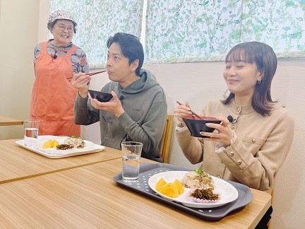 能登の伝統野菜「中島菜」をつかった学校給食を食べている様子をリポート