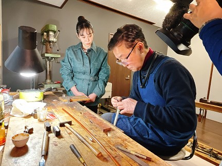 令和7年度かわさきマイスターに認定された弦楽弓製作の福田さん