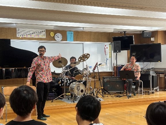 今回は、幸区にある御幸小学校で、児童と先生の皆さんと一緒に、音楽ワークショップを行いました。