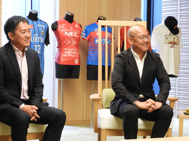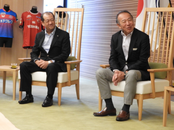 令和6年8月27日(火)、2024年秋季シーズン開幕に伴い、「かわさきスポーツパートナー」である富士通フロンティアーズの選手・スタッフの皆さんが川崎市役所に来庁されました。