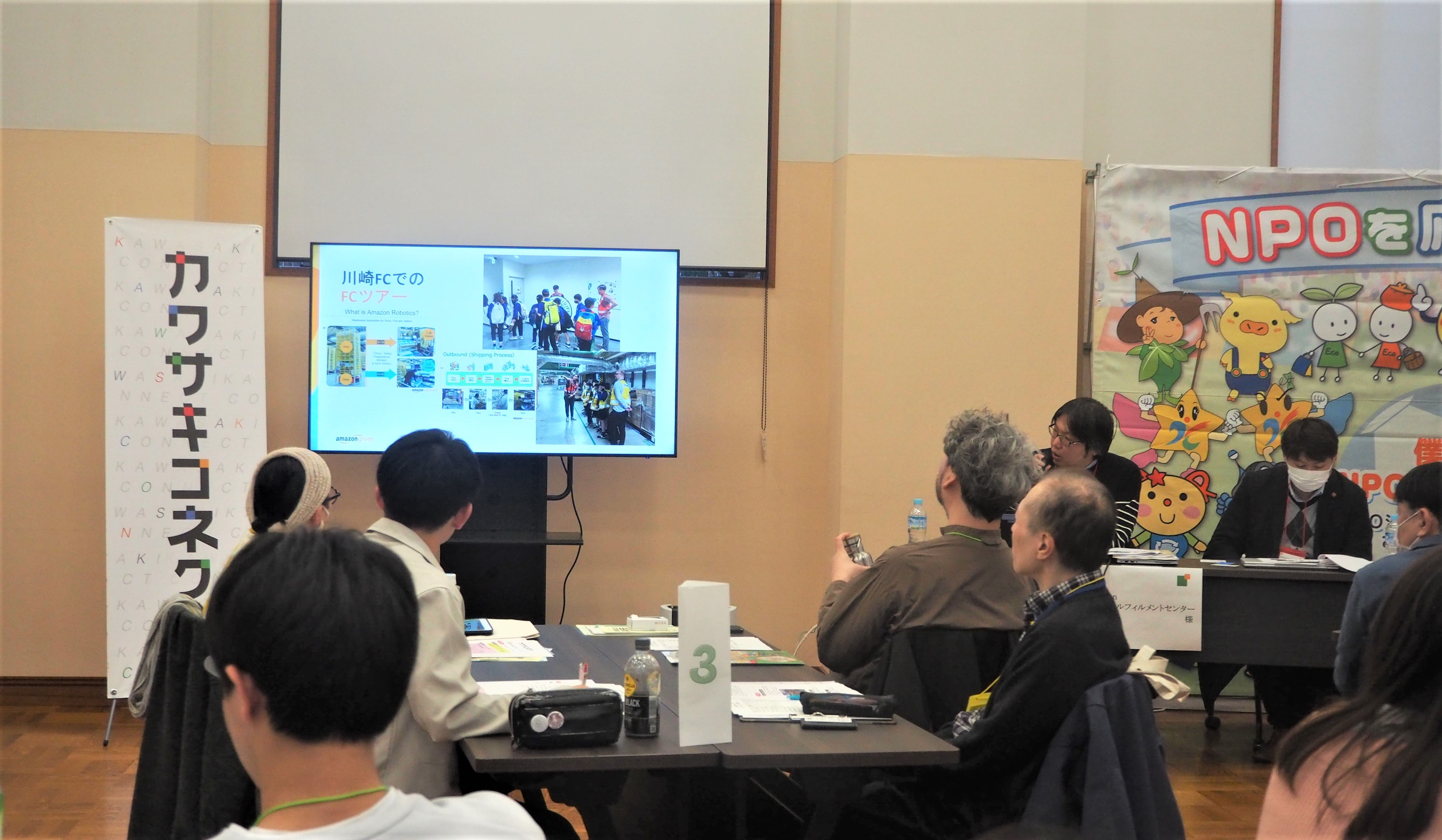 の関係づくりのヒント」がテーマです。登壇企業にAmazon川崎フルフィルメントセンターの方を招き、社会貢献活動についての事例発表がありました。その後、登壇企業も交えて企業と市民活動団体との関係づくりについて一緒に考えました。