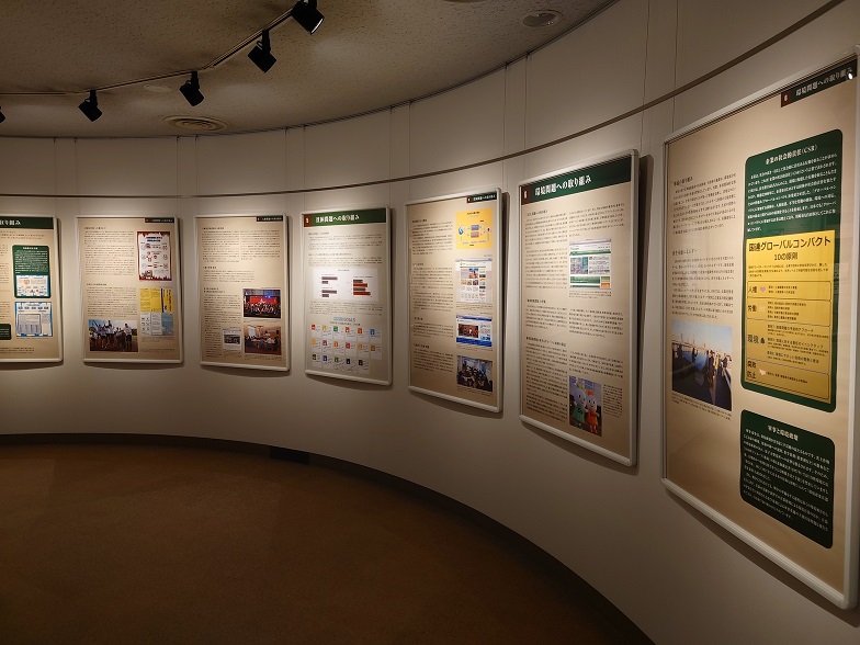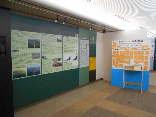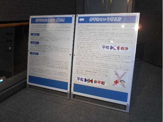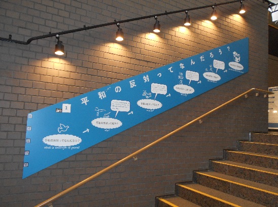 「平和の反対は?」という問いかけを進みながら、平和とは何かを分りやすく説明しています。世界各地の平和に関わる格言も展示しています。