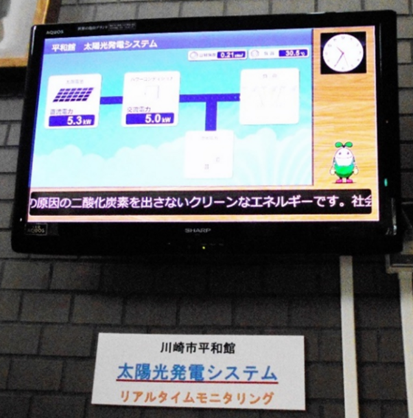 屋上には太陽光発電装置を設置しています。館内電気使用量の約4分の1の電力を補っています。(見学はできません)