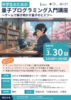 中学生のための 量子プログラミング入門講座 ~ゲームで解き明かす量子のヒミツ~ | 令和8年3月30日 | 中学生向け | 茨城大学・TIS㈱・川崎市 |