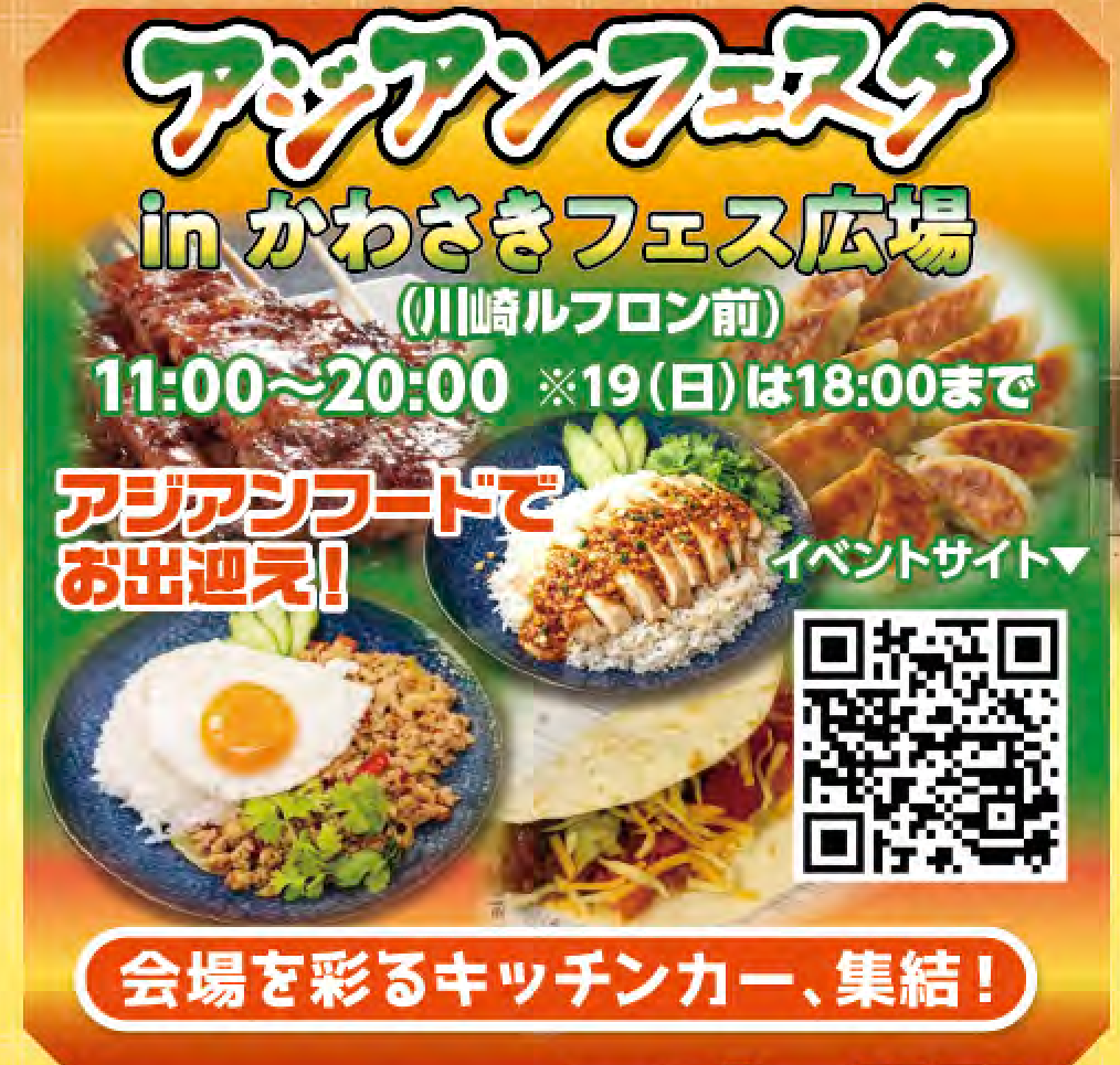 川崎駅東口の「いさご通り」に、地元アジア料理店等による屋台が出店します。