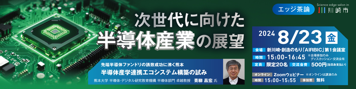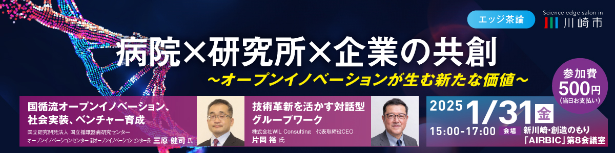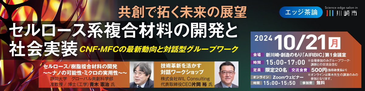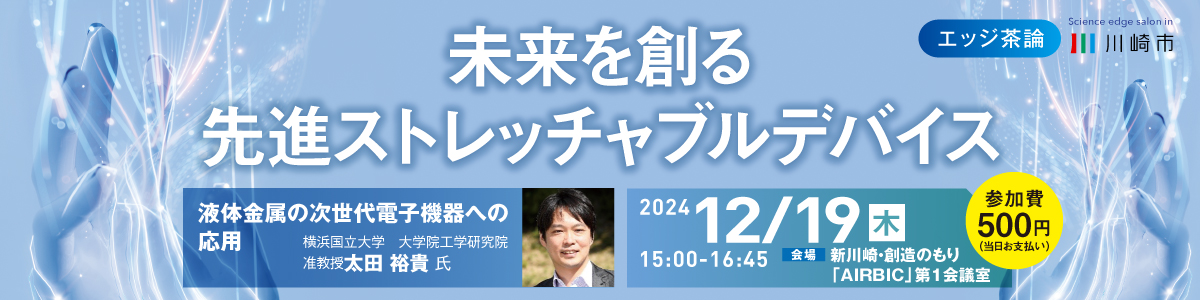 「新川崎・創造のもり」で展開する先端分野の研究開発等に関連した最新動向や社会実装をテーマとする、技術者や研究者、新規事業担当者向けの小規模のセミナー・交流会です。