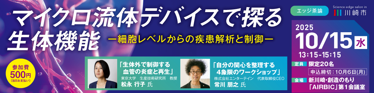 「新川崎・創造のもり」で展開する先端分野の研究開発等に関連した最新動向や社会実装をテーマとする、技術者や研究者、新規事業担当者向けの小規模のセミナー・交流会です。