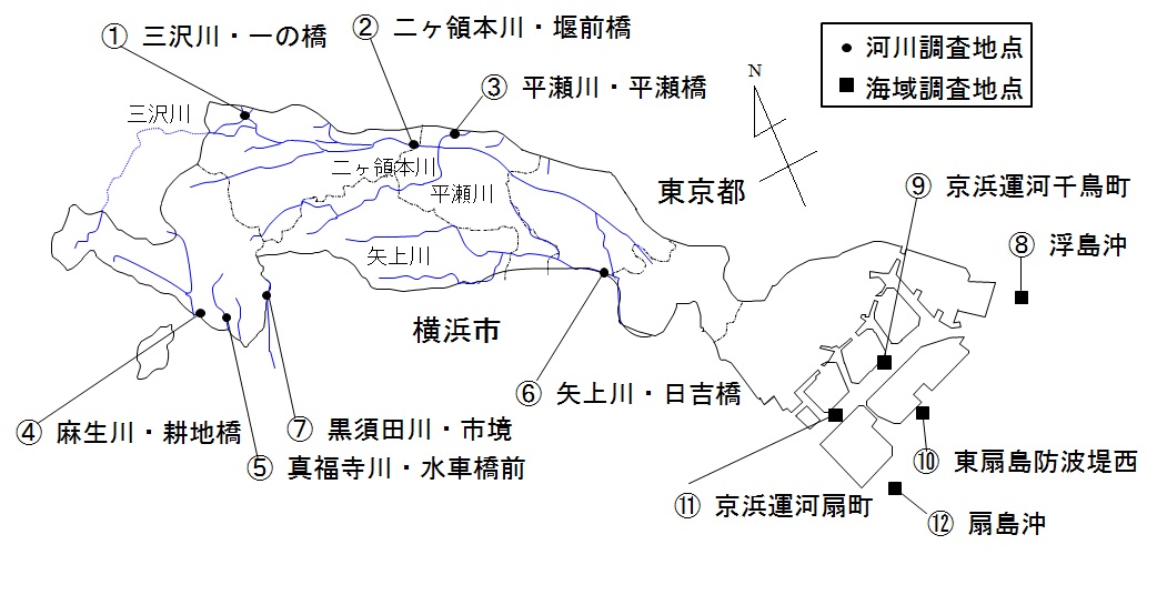 河川7地点、海域5地点の計12地点全てで環境基準を達成しました。
