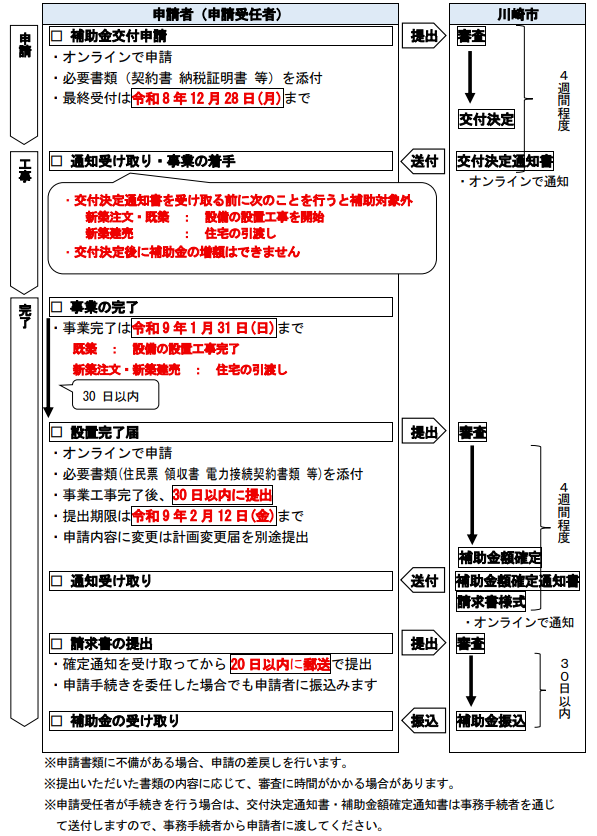 ※申請者(手続受任者)と市の書類のやりとりは、オンライン手続かわさき(e-KAWASAKI)により行います。(請求書の提出を除く)。