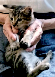 雑種 | 2か月 | オス | サバトラ | 未実施 | 大変元気で毎日元気で飛びまわっています。 食欲旺盛で台所に来るのが大好きです。 ※子猫のため性別が間違っている可能性があります |