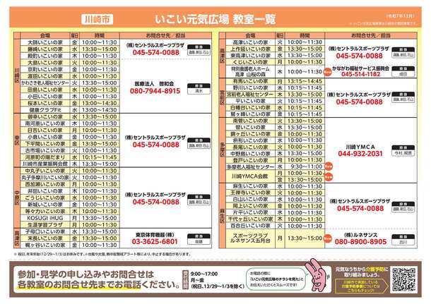 参加方法:各教室のお問合わせ先へ、お電話にてご連絡ください。お問合せ先は「教室一覧」参照。