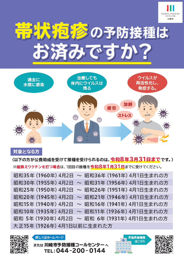 帯状疱疹(たいじょうほうしん)ワクチンの定期予防接種の実施について