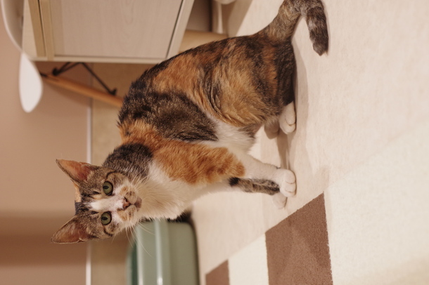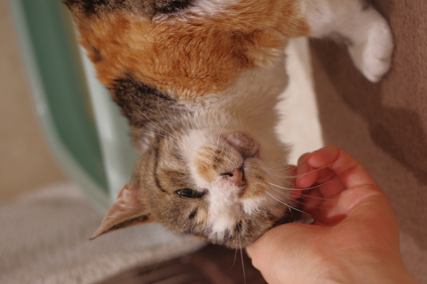 性格 | 人に撫でられるのが大好きな、穏やかで甘えん坊な三毛猫ちゃんです。ごはんとおやつが大好きで、環境が変わっても食欲は落ちず、しっかり完食する頼もしい性格。ストレスにも強く、新しい環境にも順応しやすい子です。 玩具への反応はまだ未知数ですが、これからの発見が楽しみです。落ち着いた暮らしを一緒に過ごしてくださる里親さんを募集中です。