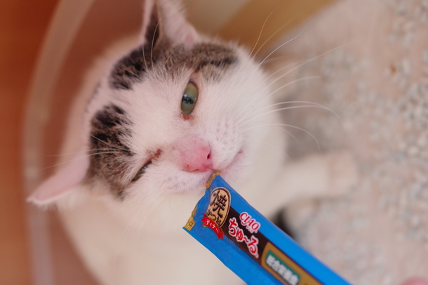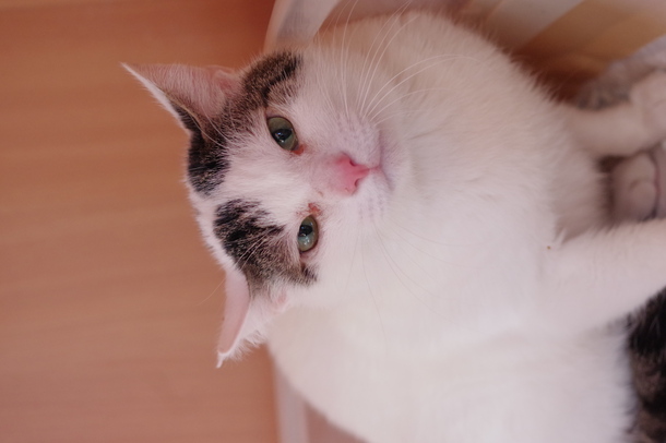 | 性格 | 白キジ柄の男の子です。おやつが大好きで、もらうと嬉しそうにきれいに食べきる姿がとても愛らしいです。玩具遊ぶことも好きで、とくに羽根つきのおもちゃを使った遊びには積極的に参加してくれます。ただし、まだ人に触れられることには慣れておらず、触ろうとすると逃げようとしたり、「シャー」と声を出したりします。