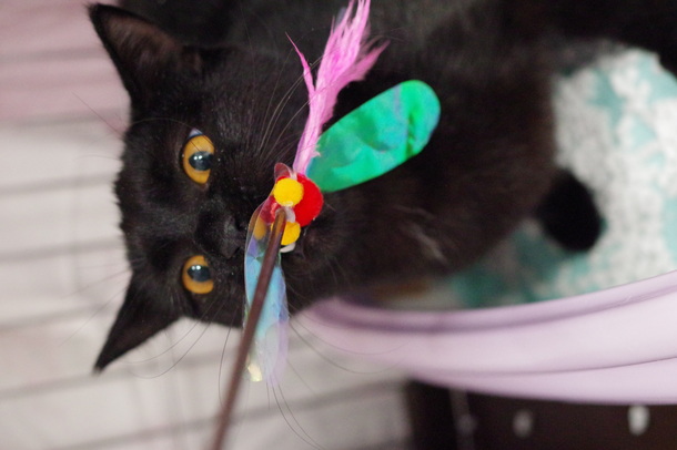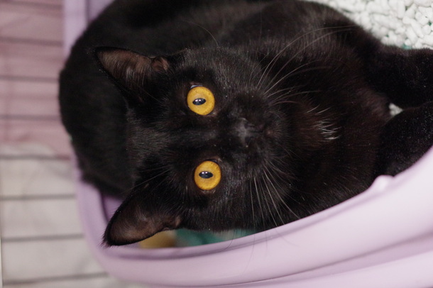 | 性格 | 黒猫のように見えますが、おなかに白い毛があるのが特徴的な女の子です。積極的に触られることが好きなわけではありませんが、そっと手を近づけると触らせてくれます。おもちゃやおやつへの反応は良く、とくに羽根つきのおもちゃには楽しそうに反応してくれます。まだ人との距離をゆっくり縮めている段階ですが、遊びやおやつを通して信頼を深めていく姿には、この子ならではの魅力があります。焼豆腐のペースに寄り添いながら、やさしく見守ってくださる方との出会いをお待ちしています。