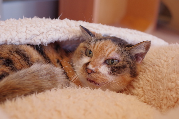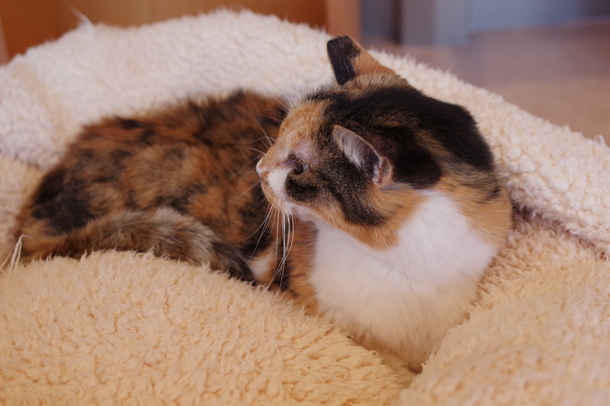 | 性格 | 三毛柄がやさしい印象の穏やかな子です。撫でられることを受け入れてくれ、落ち着いた時間を一緒に過ごせます。食べることが好きで、食事の時間を楽しみにしている様子が見られます。保護当初は弱っていましたが、自分の力で食べられるまでに回復し、しっかりとした生命力を感じさせてくれました。おもちゃへの反応はこれから確認していく段階です。無理のないペースで寄り添いながら、穏やかに見守ってくださるご家庭とのご縁をお待ちしています。