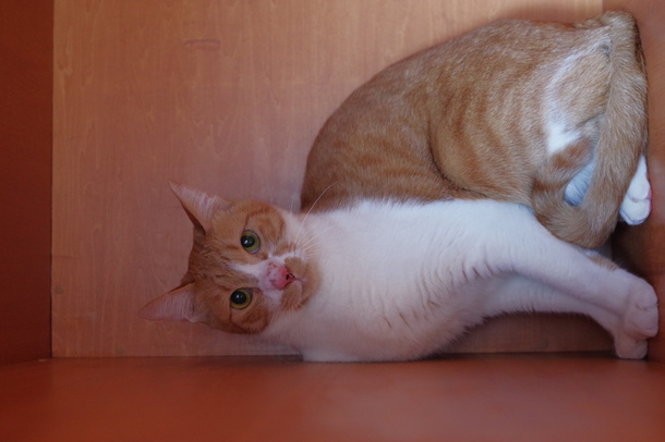 | 性格 | 茶白のやわらかな色合いが特徴の子で、現在は環境に慣れるための時間を必要としており、人馴れの練習を進めている段階です。おやつやおもちゃへの反応はこれから確認していく必要があります。職員の姿をじっと見つめたまま固まってしまうことが多く、慎重に様子をうかがいながら過ごしているようです。コリアンダー君のペースを大切にし、ゆっくりと寄り添ってくださるご家庭との出会いをお待ちしています。