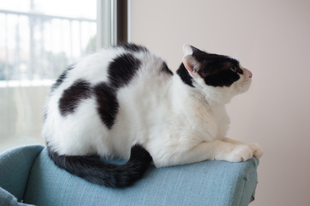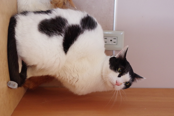 | 性格 | 白黒のはっきりとした模様が印象的な子で、まだ環境の変化に緊張が残り、人馴れの練習を進めている段階です。おやつやおもちゃへの反応はこれから確認していく必要があります。職員の動きをじっと見つめたまま固まってしまうことが多く、慎重に様子をうかがっているように感じられます。シナモン君のペースを大切にしながら、ゆっくり寄り添ってくださるご家庭との出会いをお待ちしています。