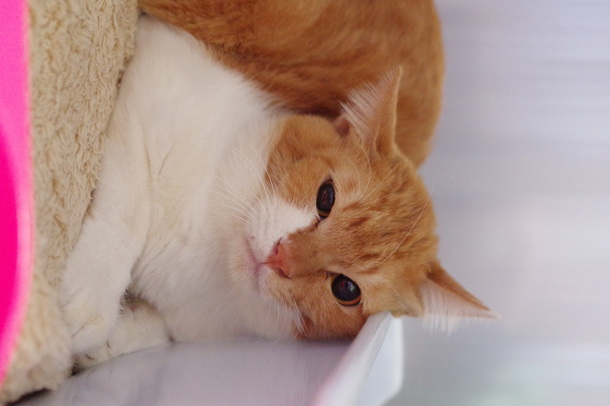| 性格 | 茶白の柔らかな色合いが印象的な子で、現在は環境の変化に慣れるための時間を必要としており、人との距離を慎重に保ちながら過ごしています。まだ不安が強く、人が近づくと身構えてしまうことがあり、その際に強めの反応が出る場面も見られます。おやつやおもちゃへの反応はこれから確認していく段階で、今後どのような一面を見せてくれるのか見守りたいところです。サフラン君の気持ちに寄り添い、ゆっくりとペースを大切にしてくださるご家庭との出会いをお待ちしています。