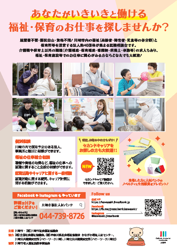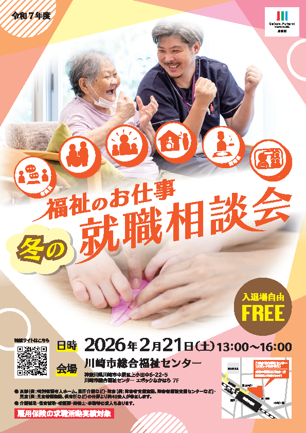 令和7年度「福祉のお仕事 冬の就職相談会 in 川崎」の詳細はこちら!外部リンク