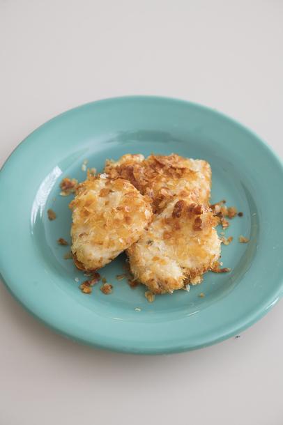 | 2 | (1)にマヨネーズをからめ、マッシュポテトフレークをまぶす。 |