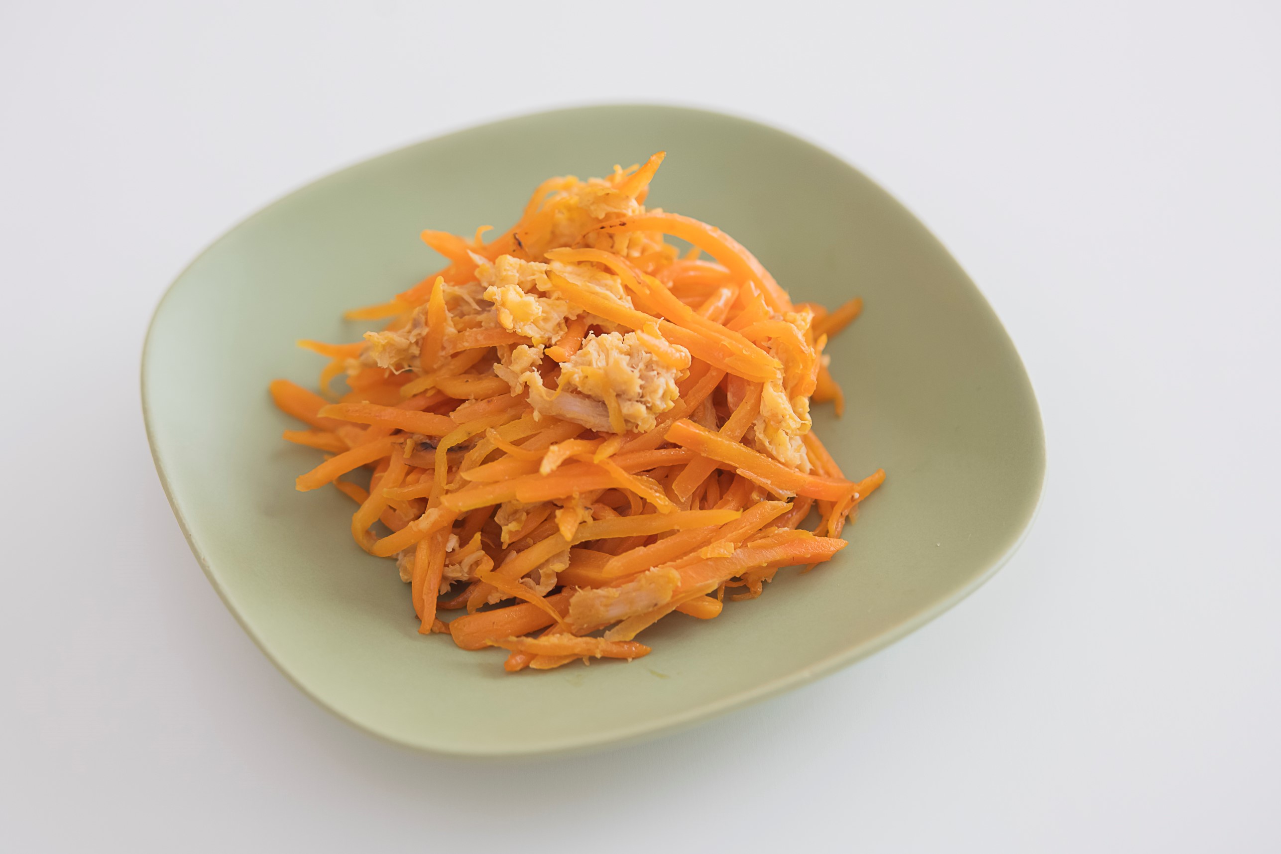 人参を細く切って卵と炒めた、ふんわり甘い人気の沖縄料理。こどもでも食べやすい味です。
