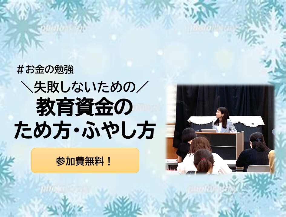 お子様の大学入学までに400万円必要!?後悔しないための今からできる教育資金の準備方法を、お金のプロからを学んでみませんか?初心者にも分かりやすいお金の勉強会です。