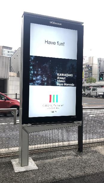 川崎市では、川崎駅東口駅前広場内にて、令和元年9月より広告塔を10基20面(うちデジタルサイネージ型広告塔は7基9面)設置し、民間の広告を放映するとともに、公共情報(全体の放映時間の10%)を放映する社会実験を実施してきました。