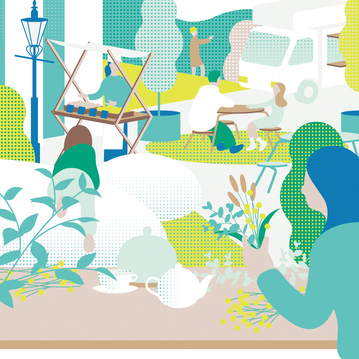 大きなテーブルや芝生と遊具、ストリートピアノやキッチンカー等、アートセンター前に期間限定のラウンジがオープンします。