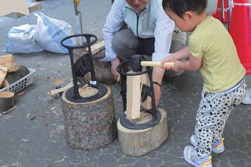 剪定や伐採によって生じた、生田緑地の発生材を利活用した薪割りにチャレンジしてみよう!