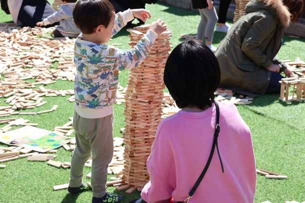 国産木材の期の香りや手触りを感じられる積み木がいっぱい!自由な発想で楽しもう!