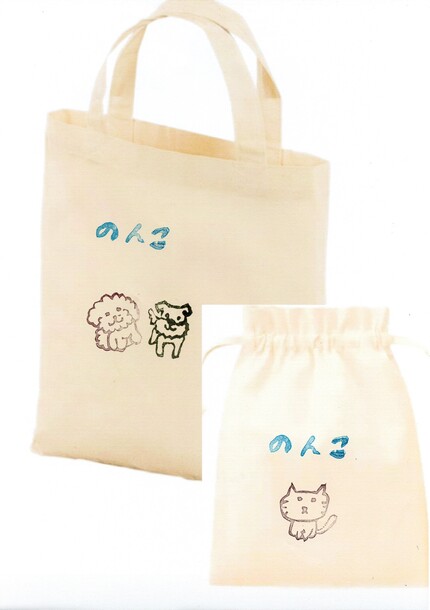 ワークショップけしごむハンコ(手作り)で無地の巾着、バッグ等にお好きにスタンプ