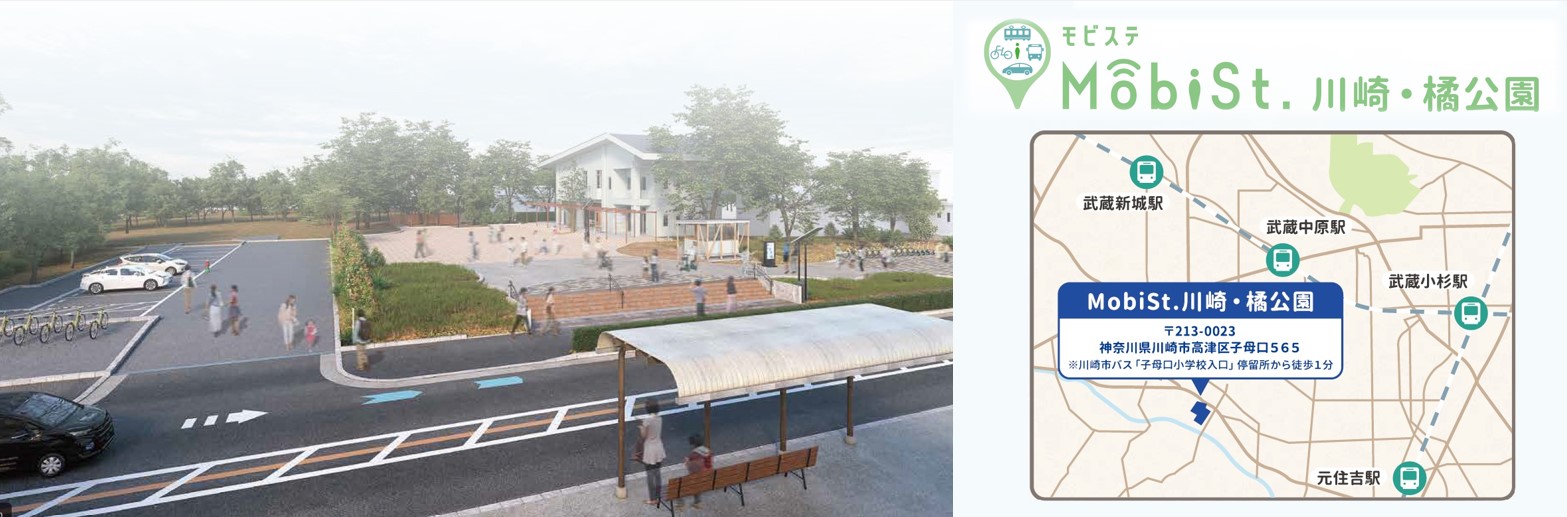 令和7年11月25日から令和8年2月28日まで、高津区の橘公園を活用し、モビリティステーション「MobiSt. 川崎(モビステかわさき)・橘公園」の実証実験を、川崎市と株式会社アットヨコハマとの協業により開始します。市内のモビリティステーションは、川崎区の「KAWASAKI のるーとHUB」に次ぐ2か所目です。