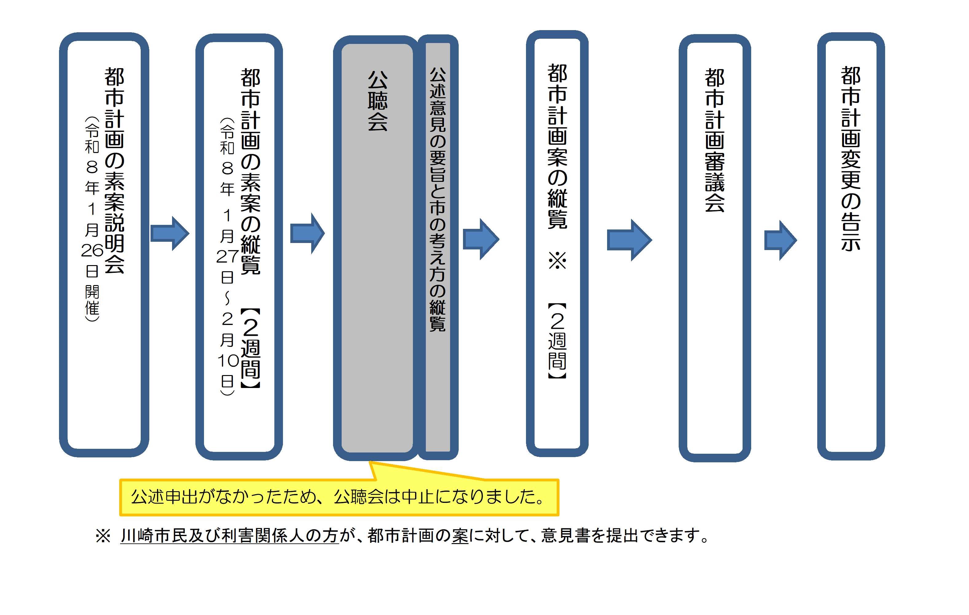 令和8年2月26日(月)午後7時から予定されていた公聴会は、素案の縦覧期間中に公述の申出がありませんでしたので、開催いたしません。