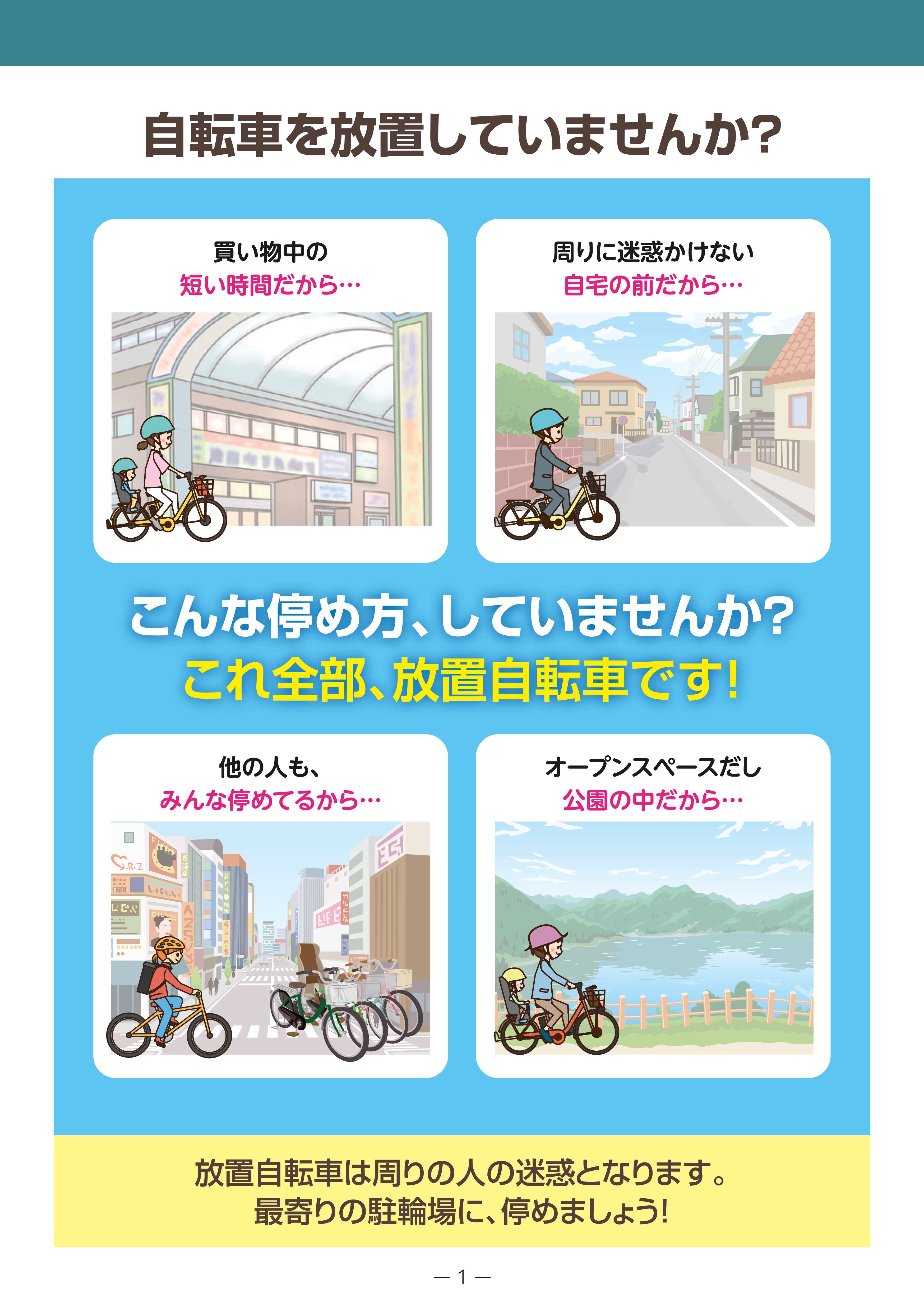 放置自転車なしでまちもスッキリ!(全区版)(PDF形式, 7.73MB)別ウィンドウで開く自転車等放置禁止区域、放置自転車の撤去・保管、市営駐輪場の利用、自転車の利用・通行のルール等を記載したパンフレットです。 また、市営駐輪場の利用・運営管理、撤去・保管等に関するお問い合わせ先を記載しています。