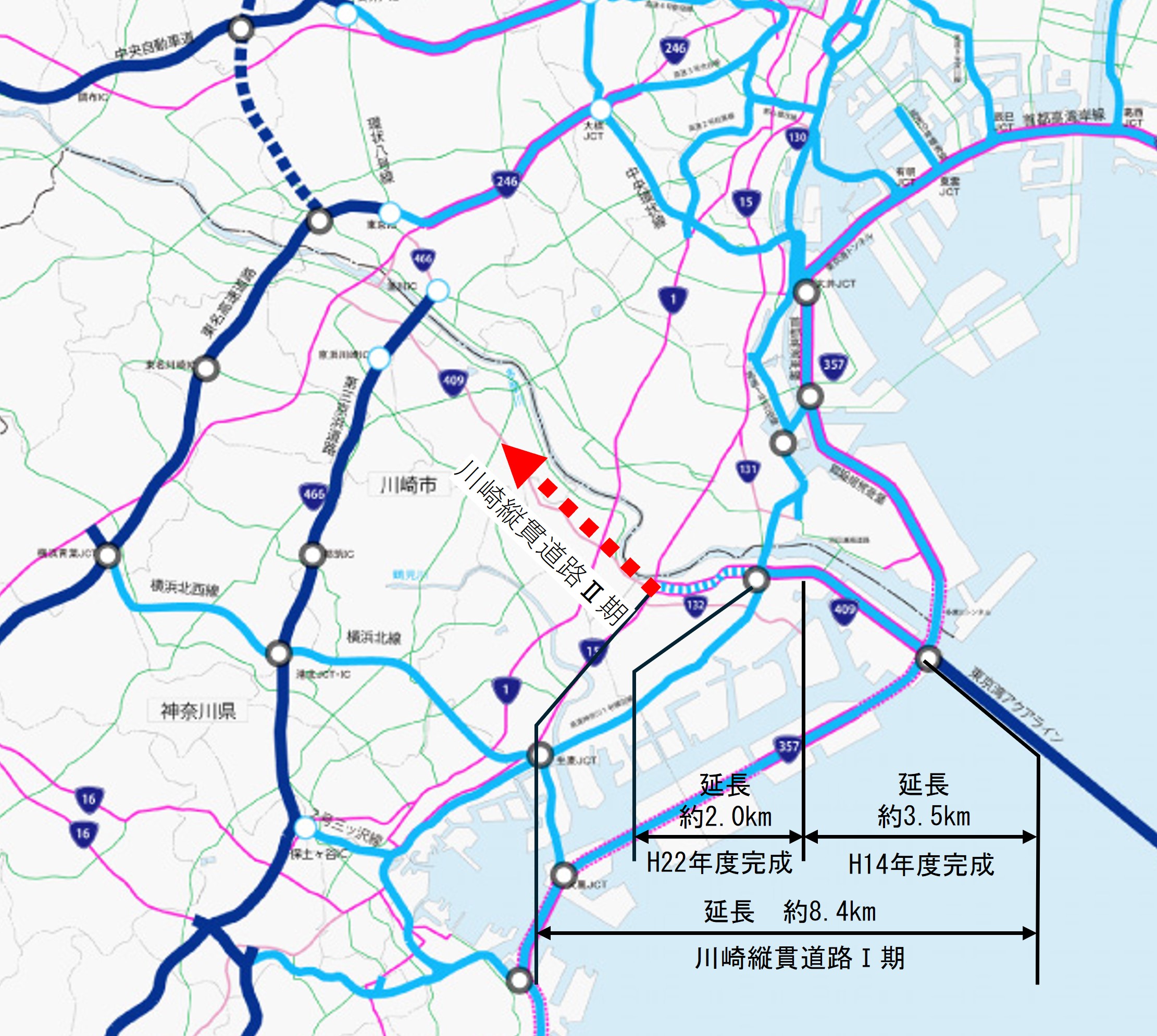 川崎縦貫道路 概略図(国土交通省作成資料を編集)