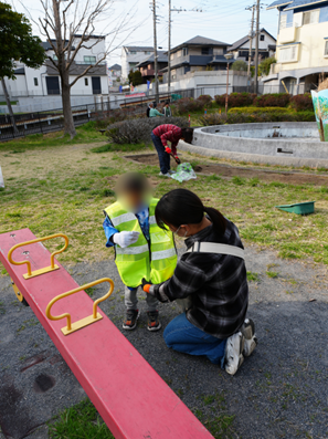 子どもたちも参加し、地域の方と協力しながら、公園の清掃や環境づくりに取り組んでいます。