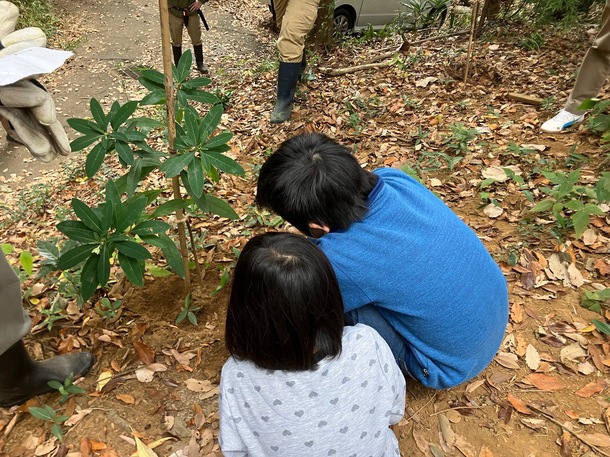 植樹する樹種には当地の里山環境に合わせた樹種を選定しているほか、企業経営を通じて消費される紙資源を考慮し、日本に古くから生息し和紙の原料であるミツマタの植樹も行っています。