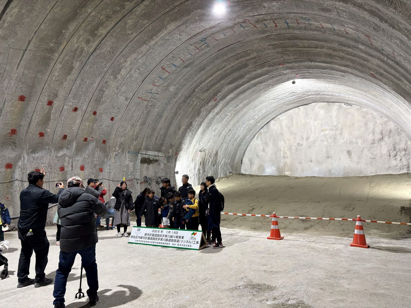 令和8年1月18日(日曜日)に、「麻生区内都市計画道路尻手黒川線道路築造(トンネル)工事」でトンネル貫通前最後の現場見学会を開催しました。