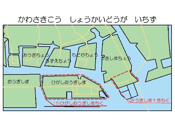 (2)浮島1期地区はごみや陸上から運ばれてくる土で海を埋立てて造られたんだよ。浮島1期地区ができるまでを紹介するよ。
