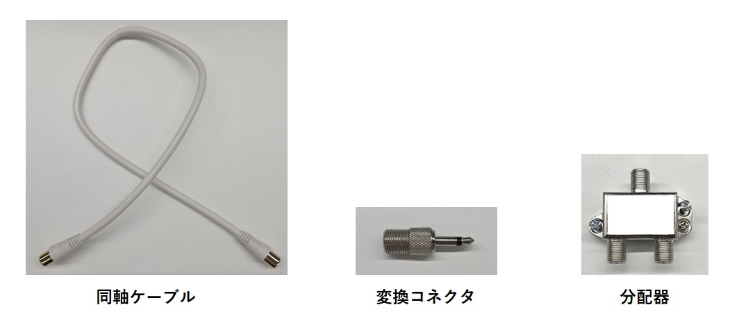 防災ラジオと同軸ケーブルの接続には、変換コネクタを使用し、防災ラジオのアンテナ端子に接続してください。